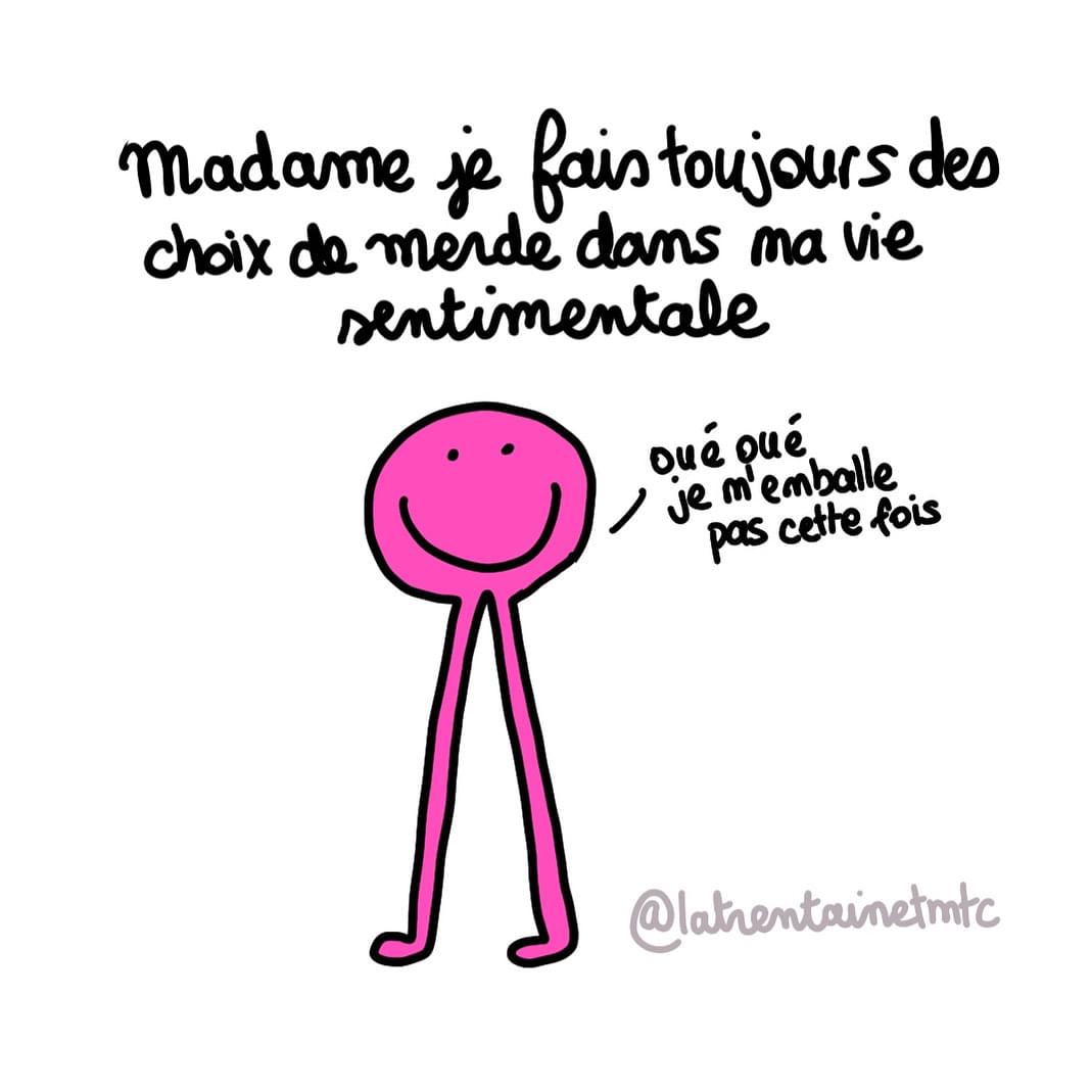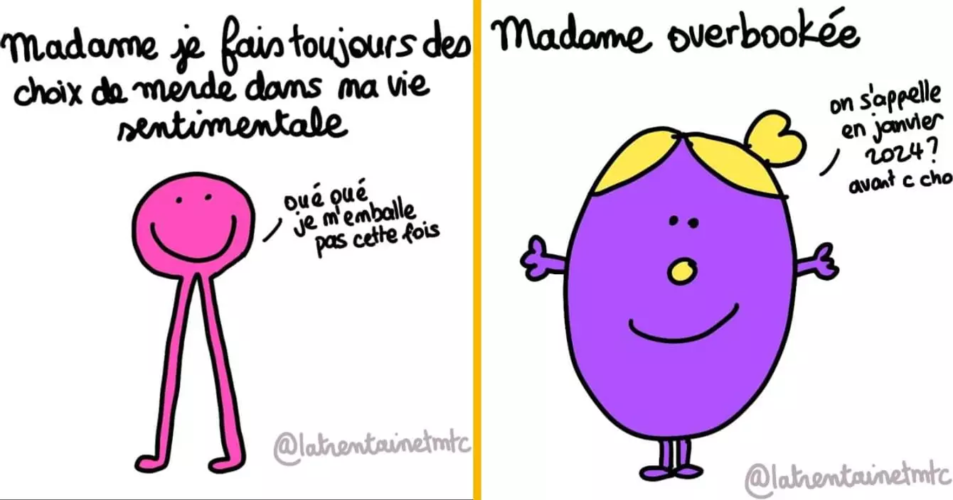 Salut mes petites cuisses de poulet, aujourd'hui on vous embarque dans l'univers comico-dépressif du compte insta @LaTrentaineTmtc qui nous avait déjà beaucoup fait rire dans ce top. Cette fois-ci on revisite les profils de nous autres trentenaires en version Monsieur/Madame et c'est divinement drôle. Allez donc acheter son livre bande de truffes.