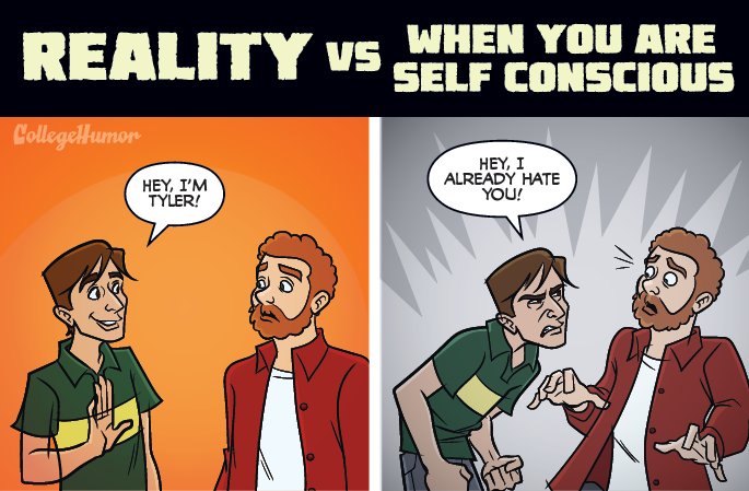 Réalité : Salut, moi c'est Tyler ! Dans la tête d'un(e) timide : Salut, je te déteste déjà !