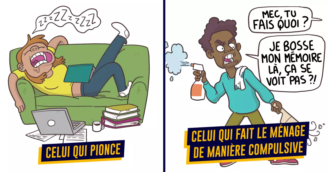 Une grande partie de l'humanité est condamnée à cette terrible maladie qui consiste à remettre au lendemain ce qu'on pourrait faire aujourd'hui. Nous sommes de toute évidence les procrastinateurs du nouveau monde.Mais dans la procrastination, il y a différents profils comme témoignent ces illustrations de College Humor.