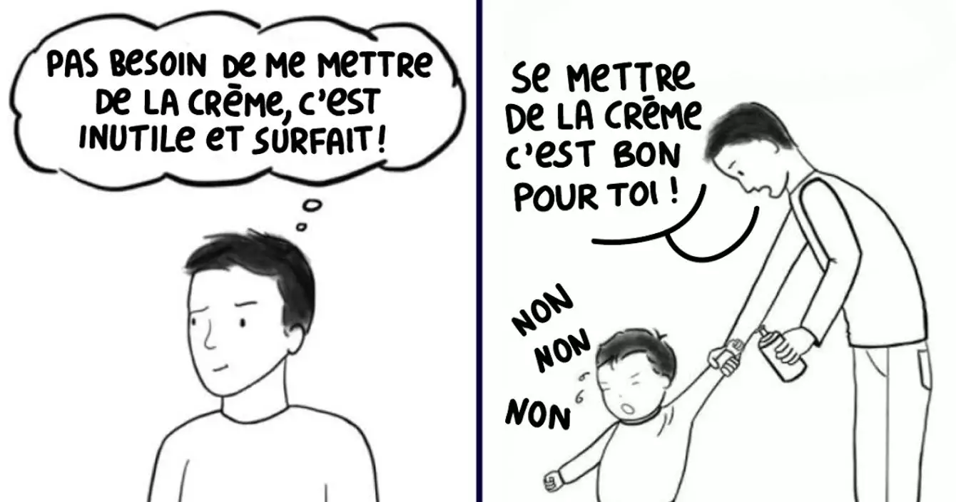 « -Se mettre de la crème, c'est bon pour toi ! -Non, non, non ! » (au cas où vous soyez vraiment une énorme brêle en anglais)