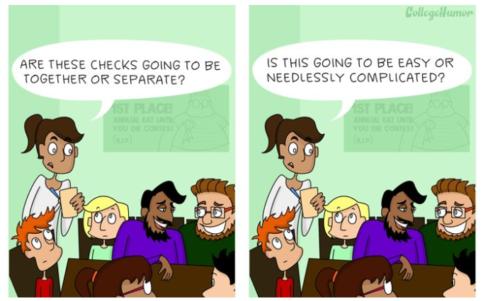Vous payez ensemble ou séparément ? / Est-ce que ça va être simple ou inutilement compliqué ?