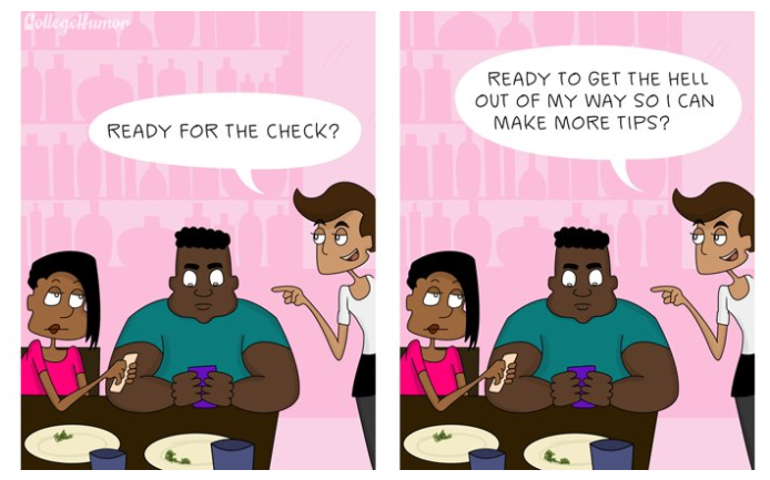 Prêts pour l'addition ? / Prêts à vous barrer pour que je puisse avoir plus de pourboires ?