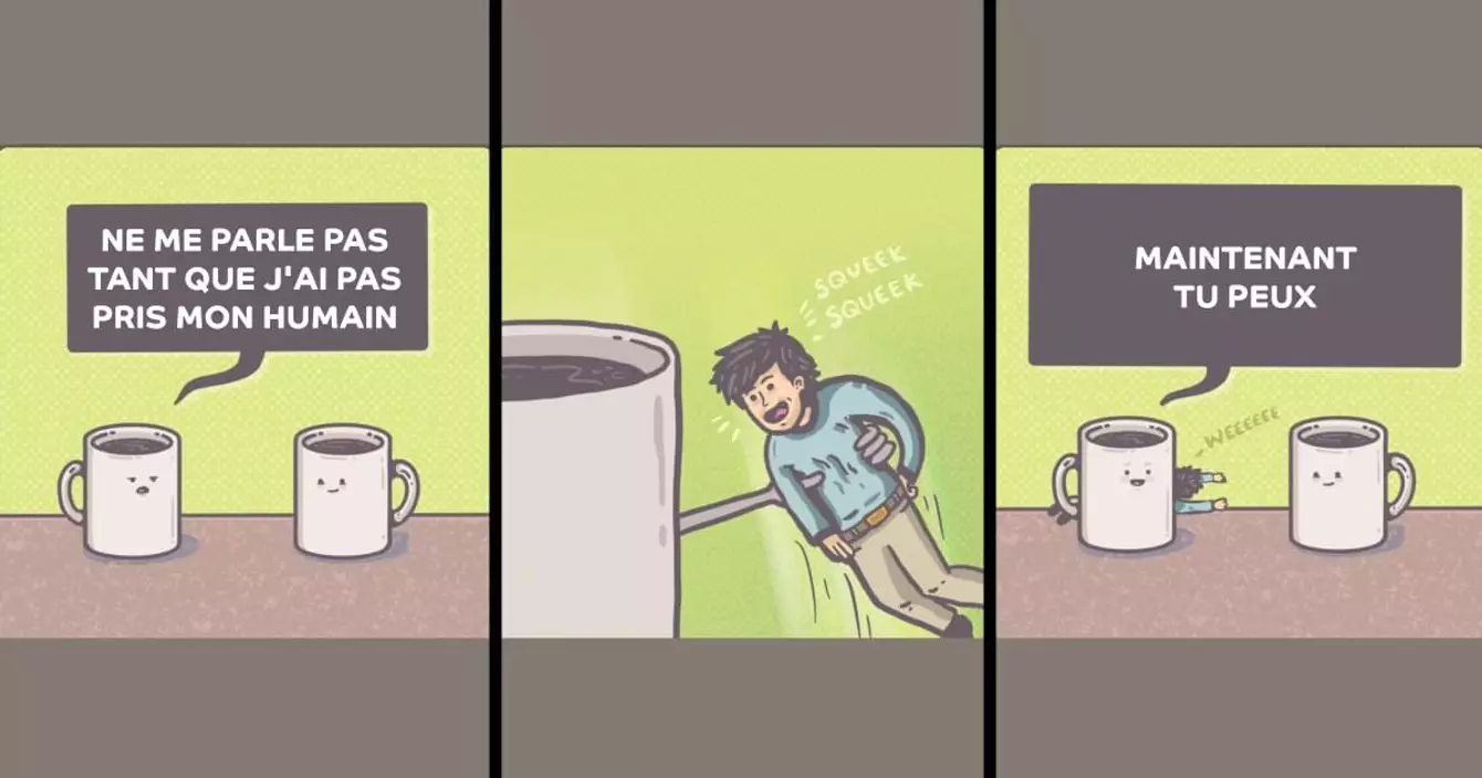 On parle assez peu de la vie des tasses de café, de leur sentiments et de leur bien-être. C'est bien malheureux. Fort heureusement le dessinateur Shawn corrige le tir avec son compte insta @popcoffeecomics qui nous narre les délicieuses péripéties d'une tasse de café. Allez aussite jeter un oeil sur son site popcoffeecomics.com pour vivre pleinement votre passion.