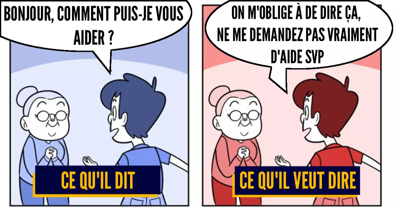 Ce que le vendeur dit : « Bonjour, puis-je vous aider ? »