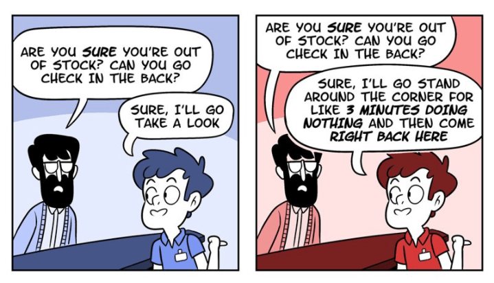 « Vous êtes sûr que c'est en rupture de stock ? Est-ce que vous pouvez aller vérifier dans l'arrière-boutique ? »