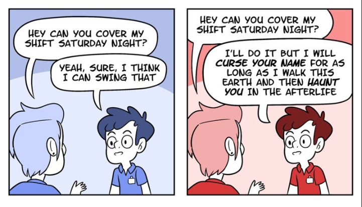 « Tu peux me remplacer samedi soir ? »