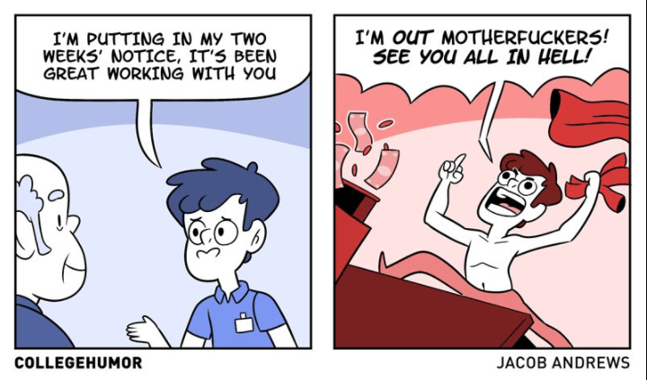 Ce que le vendeur dit : « J'arrive au bout de mon préavis, c'était super de bosser avec toi. »