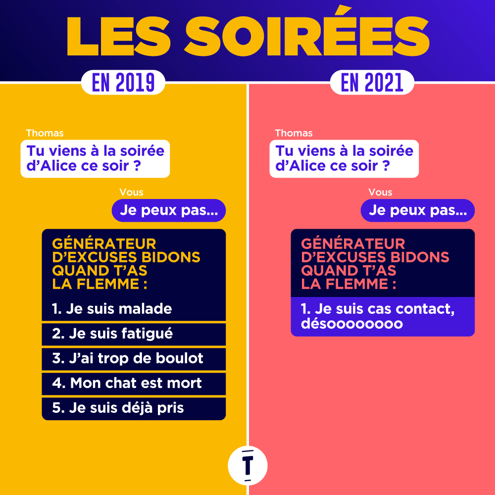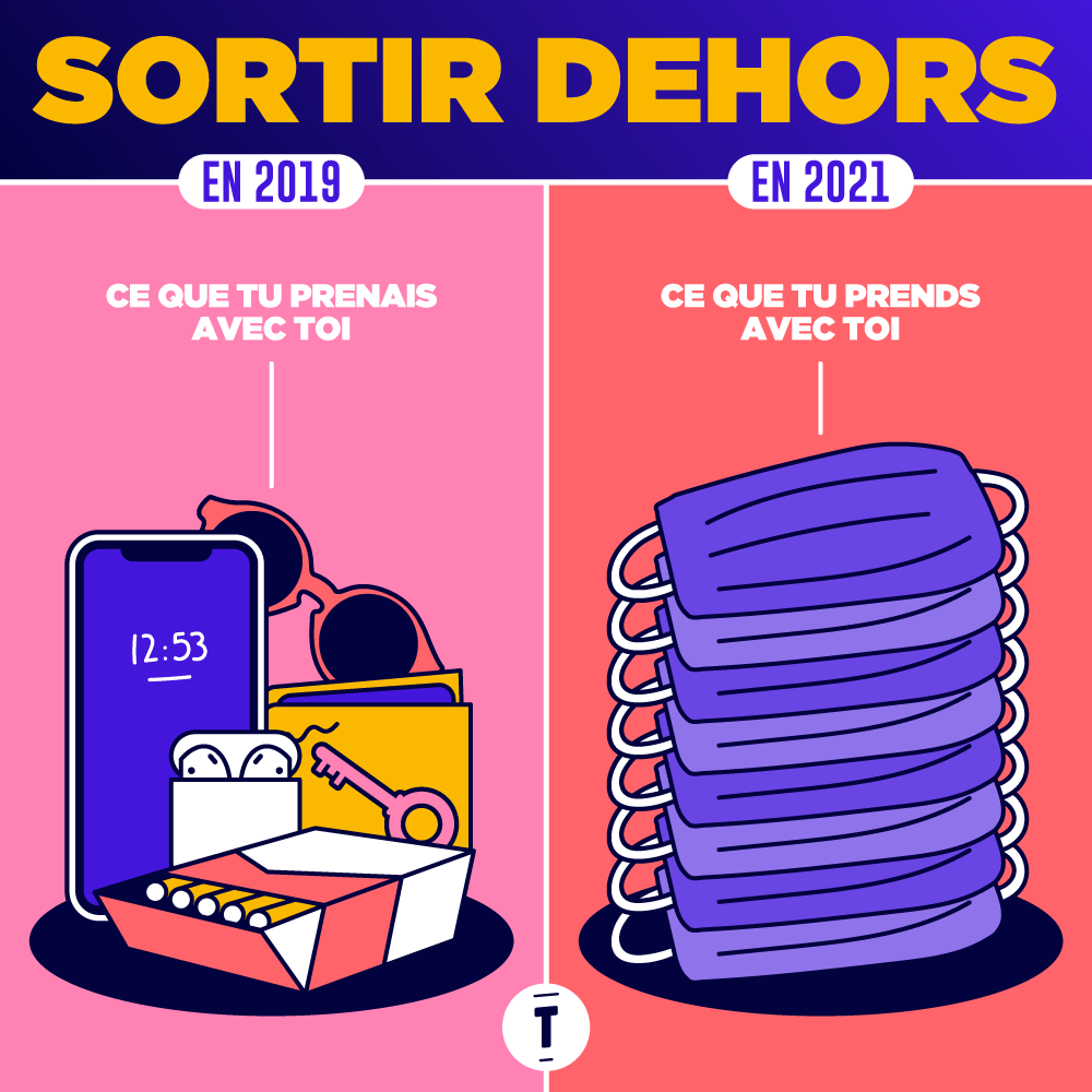 Je sais pas si vous avez remarqué, mais on n'a pas trop la même vie qu'en 2019. Enfin je veux pas noircir le tableau, mais disons que c'est pas la joie. Je dirais même que c'est pas la bamboche si vous voulez tout savoir. Alors voilà, pour le kif de la nostalgie on a comparé plein de choses de notre vie de tous les jours en mode avant/après, histoire de bien déprimer encore plus la veille d'un très probable troisième confinement généralisé. YAY.