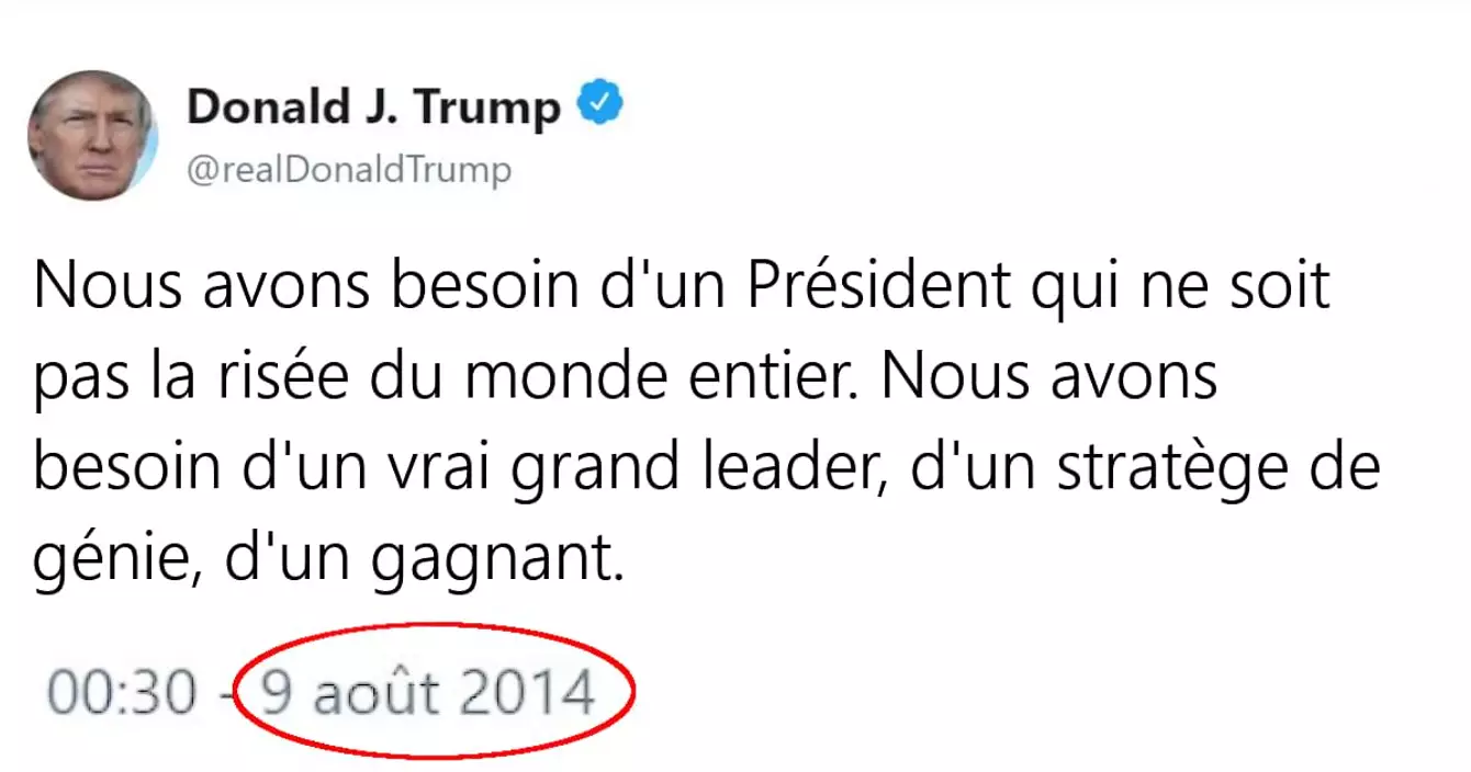 « Nous avons besoin d'un président qui ne soit pas la risée du monde entier. Nous avons besoin d'un vrai leader, d'un stratège de génie, d'un gagnant. »