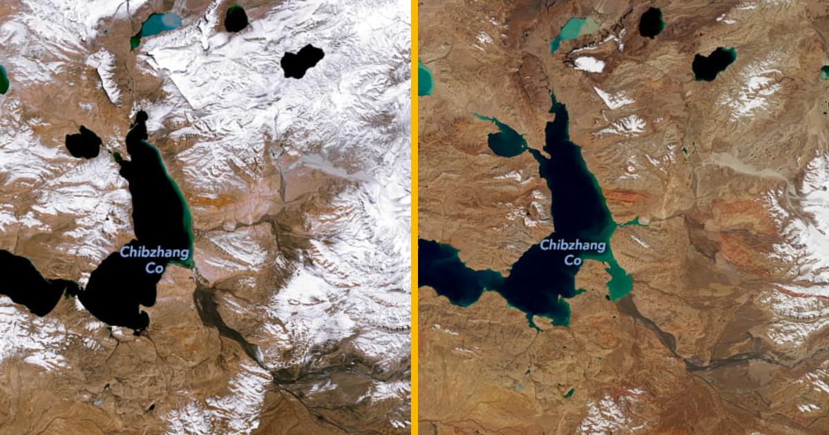 Dans la région, les glaciers se comptent par dizaines de milliers. Pourtant, la hausse des températures, l'accélération des fontes et le ruissellement des eaux sont en train de les faire disparaitre. Sur ces images, à l'ouest des monts Tanggula, on remarque sans mal la disparition des glaces. En contrepartie, les lacs grossissent.