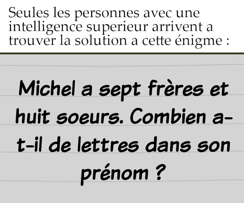 Bon, et maintenant, si vous voulez vraiment tester votre intelligence, voilà des devinettes super dures. C'est pas la même histoire.