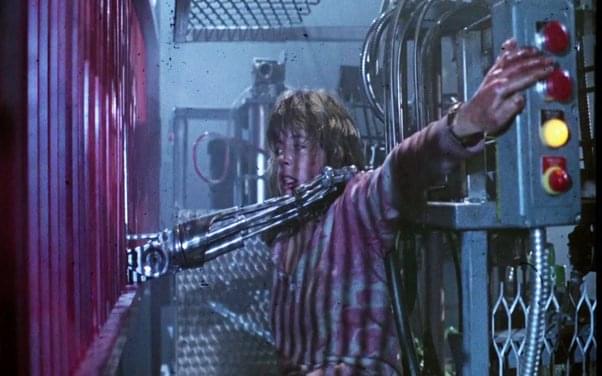 Elle savait parce qu'elle le savait vraiment : quelques minutes plus tôt, elle avait appuyé accidentellement sur ce bouton, ce qui avait allumé la presse hydraulique, raison pour laquelle Terminator avait réussi à la trouver. Du coup, elle n'avait plus qu'à le refaire après avoir lancé un joli « You're terminated, fucker !* » Quelle femme.