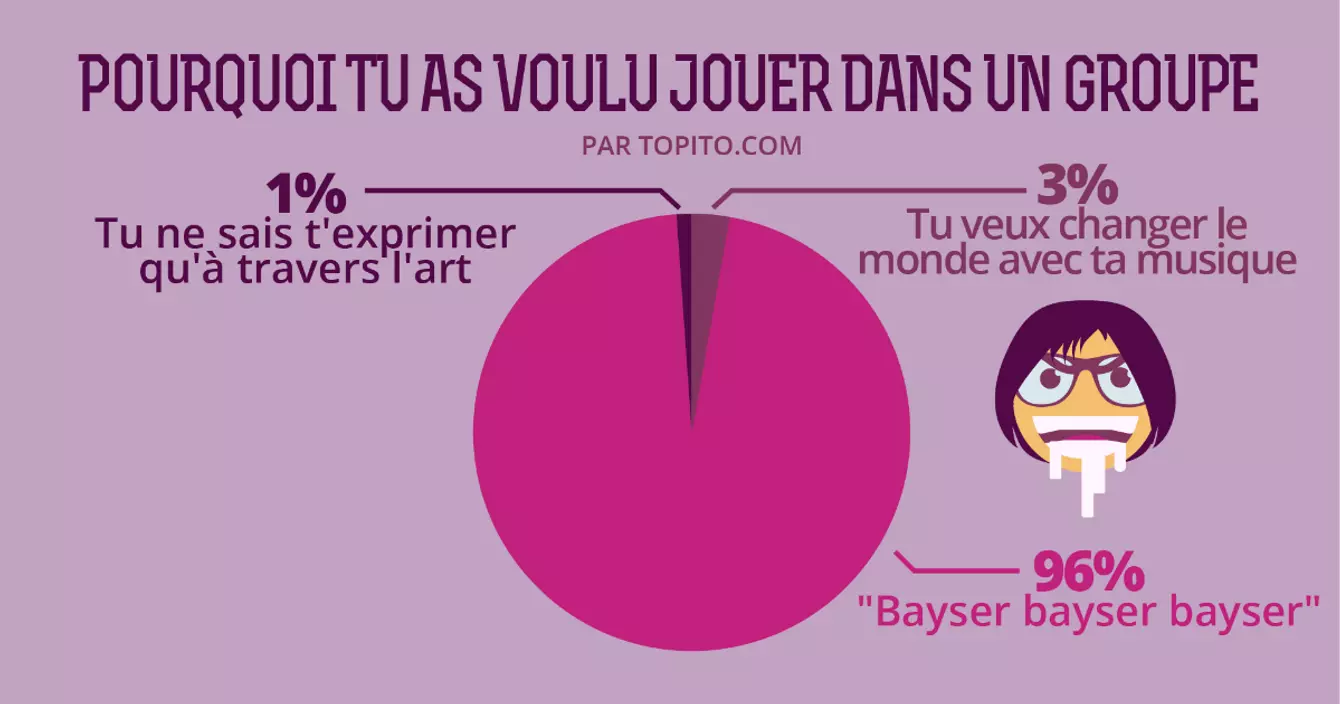 Le rock est un monde cruel. Pour un groupe qui réussit à jouer en festival, il y'en a 100 qui croupissent dans des garages. C'est à eux qu'on veut parler aujourd'hui. Parce qu'à Topito on a tous plus ou moins joué dans un groupe de rock à un moment de notre vie, on a voulu vous partager ce qu'on en avait retenu (avec un brin de mauvaise foi). Let there be rock bordel de merde !