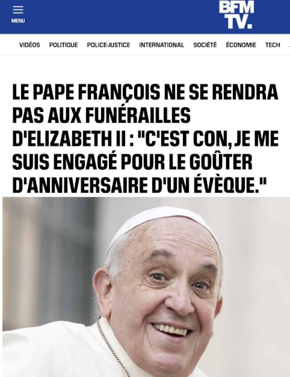 Le Pape François, grand absent des funérailles de la Reine