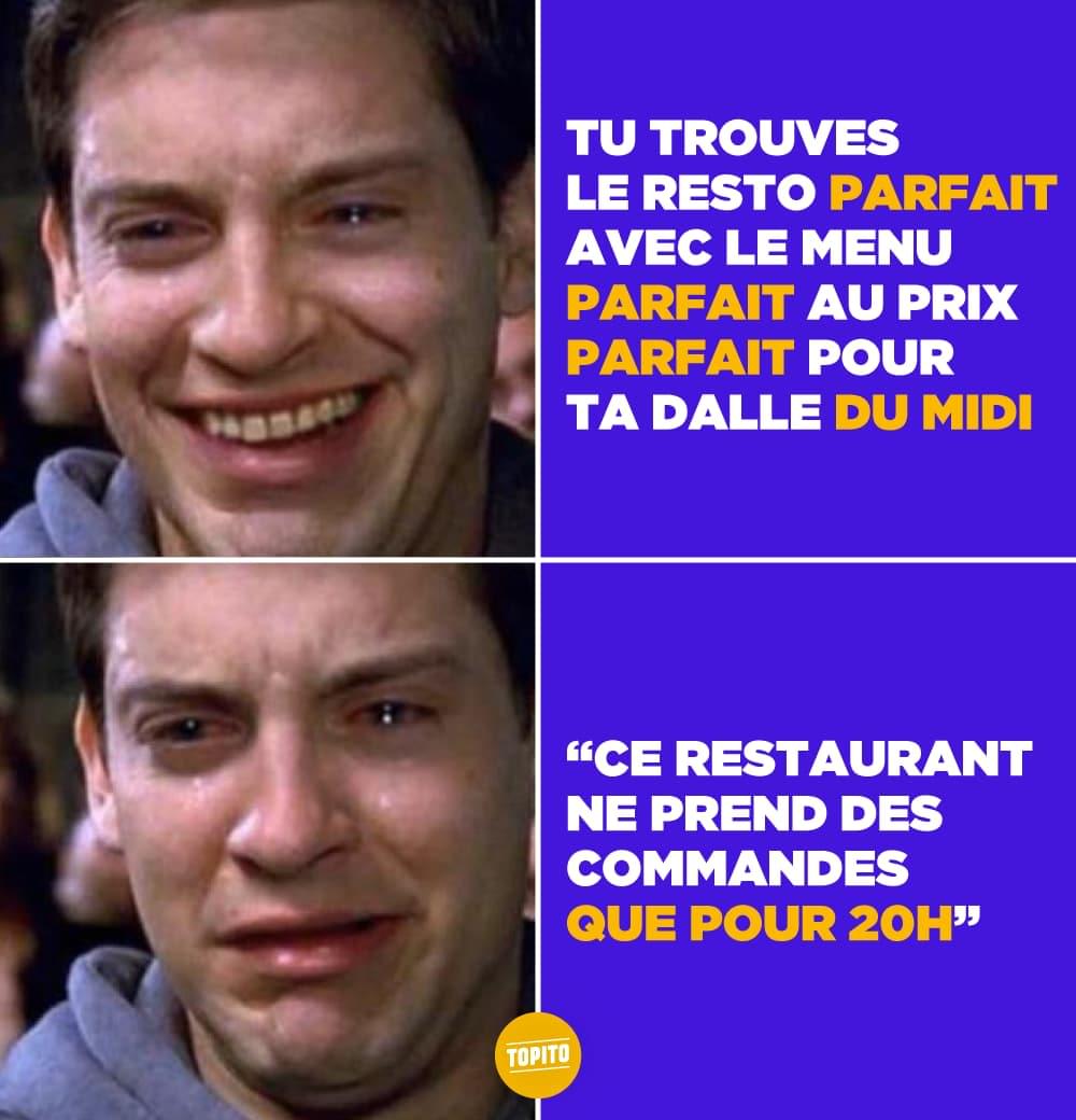 L'avis de Topito : Peut-être qu'il faut que tu retires le panneau « restaurant » de la porte de ta maison. Ça aiderait.