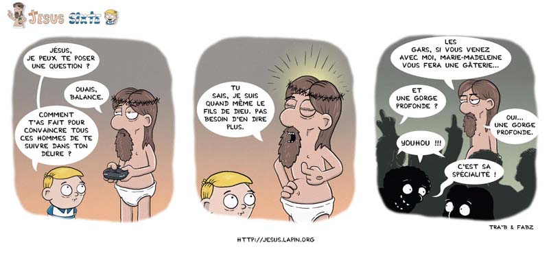 Retrouvez toutes les aventures de Jésus Sixte de Tra'b & Fabz ici-même. Et en attendant le volume 2 vous pouvez déjà vous procurer le volume 1 :