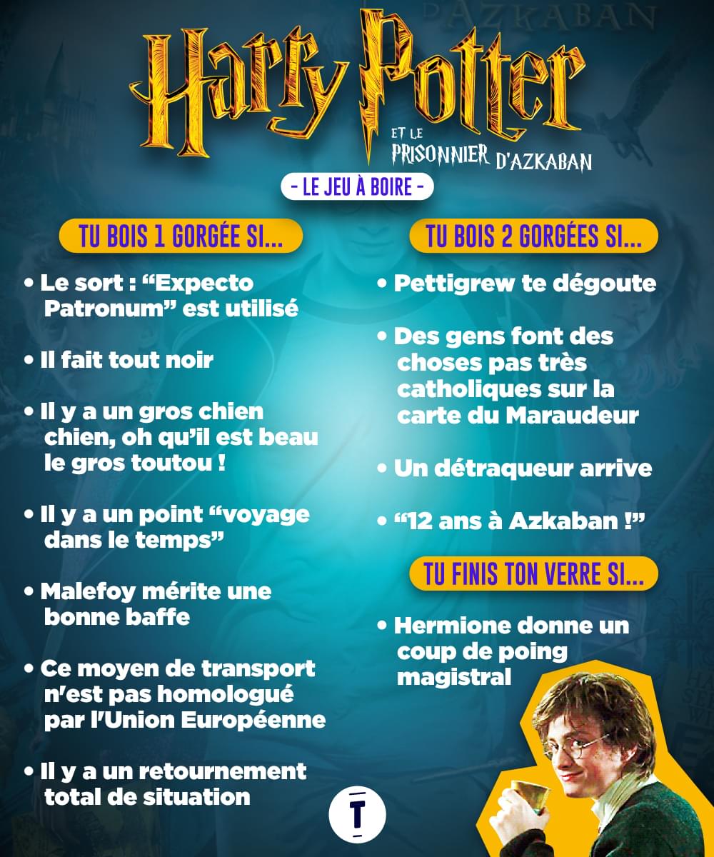 Chez Topito on aime deux choses : Harry Potter et jouer à des jeux. Par conséquent, voici une liste de jeux à boire selon les films Harry Potter. Donc tu te poses dans ton canapé, tu ouvres une bouteille de ce que tu veux (de préférence sans alcool bien sûr), et tu bois quand on te dit de boire.