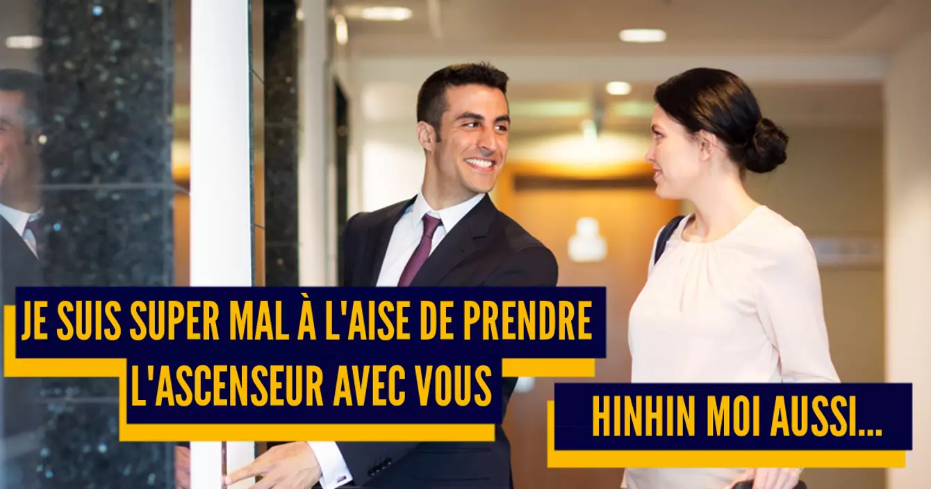 Top 3 des phrases que l'on dit dans l'ascenseur : « Bonjour. » « Quel étage ? » « Bonne journée ! »