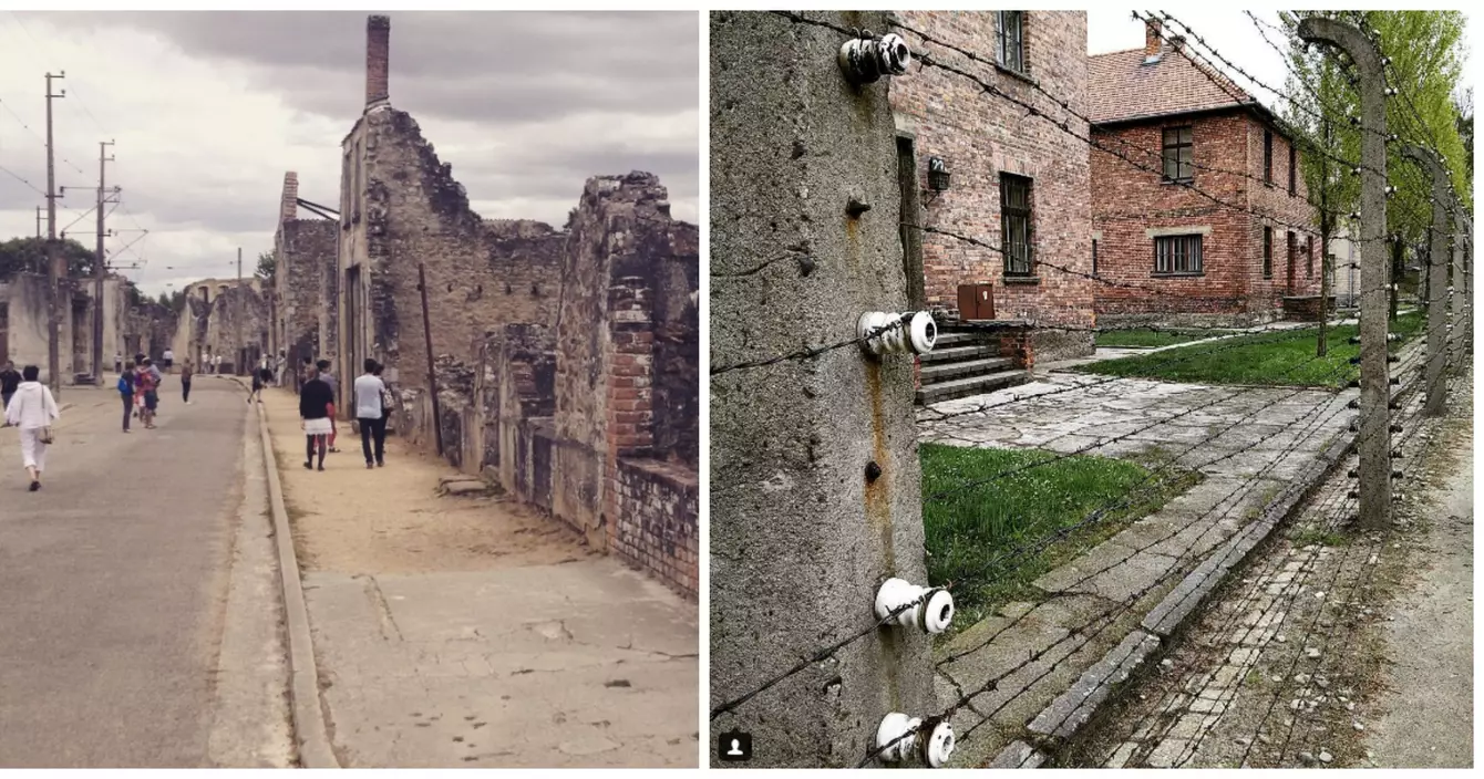 Nous sommes le 10 juin 1944, quelques jours après le débarquement de Normandie. La 2e division blindée SS Das Reich a pour ordre de faire reigner la terreur pour décourager les actes de résistances. Pour cela, consigne est donnée de massacrer des civiles, de pendre à tour de bras et de ne pas faire de détail. Au lendemain d'une intervention sanglante à Tulle qui fera 99 victimes, la division encercle Oradour, prétexte la recherche d'une cache d'armes, ordonne le rassemblement des habitants, abattent 642 personnes et brûle tout. Depuis, le temps s'est arrêté et un nouveau bourg a été érigé, à côté, pour entretenir la mémoire.