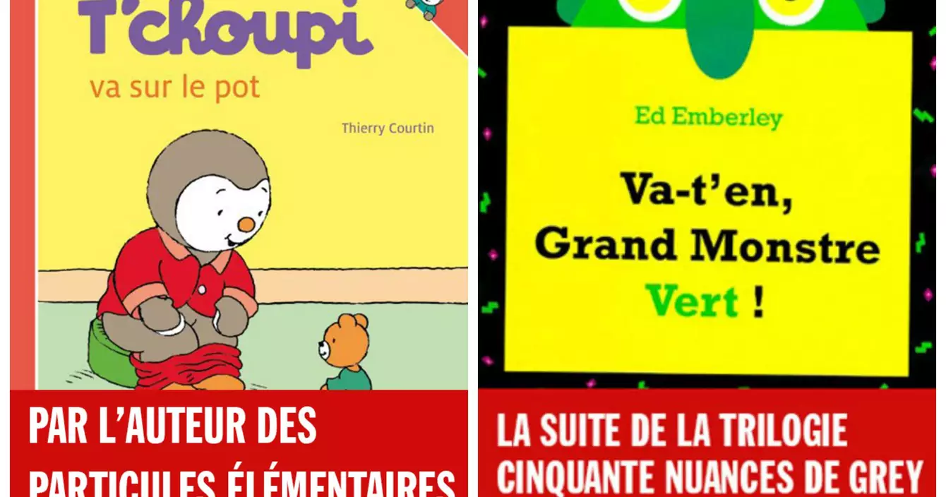 La librairie parisienne Chantelivre a eu l’excellente idée d'échanger les bandeaux des best-sellers pour adultes avec les plus grands succès de la littérature jeunesse. Et le résultat était si convaincant que le site Slate s'est aussi amusé à créer ses propres versions. Alors rions un peu avec les auteurs.