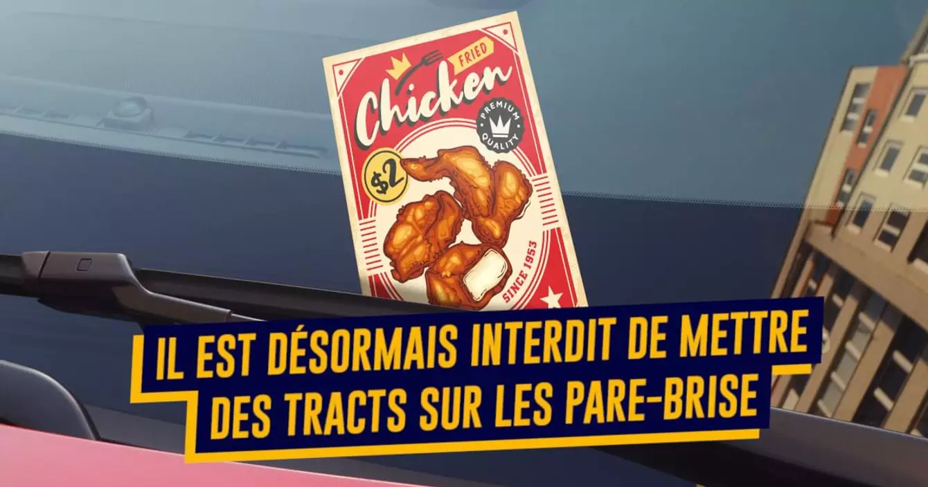 Depuis le 1er janvier 2021, il est enfin interdit de déposer des tracts insupportables sur les pare-brise des voitures. Ça va drôlement nous manquer de devoir jeter des pubs pour des restos indiens ou des ventes exceptionnelles de tapis.