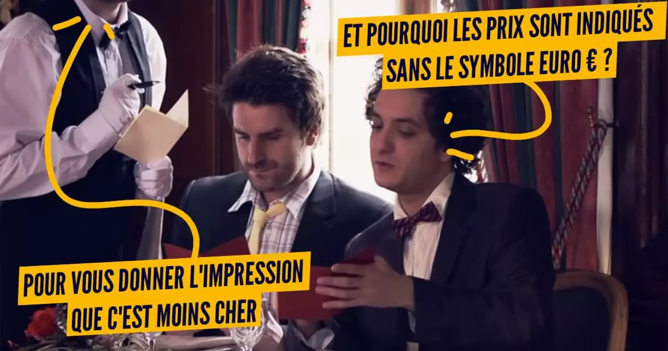Enlever par exemple le symbole de l'euro, pour faire oublier aux clients (visiblement aux clients sous mentaux et amnésiques) qu'ils sont en train de dépenser de l'argent. Il faut aussi indiquer le prix à la fin histoire de se laisser d'abord saliver par le détail du menu. Parce qu'on imagine que si on voit le prix avant ça devrait nous couper la chique. Clairement les mecs m'ont jamais eu face à eux quand j'avais faim.