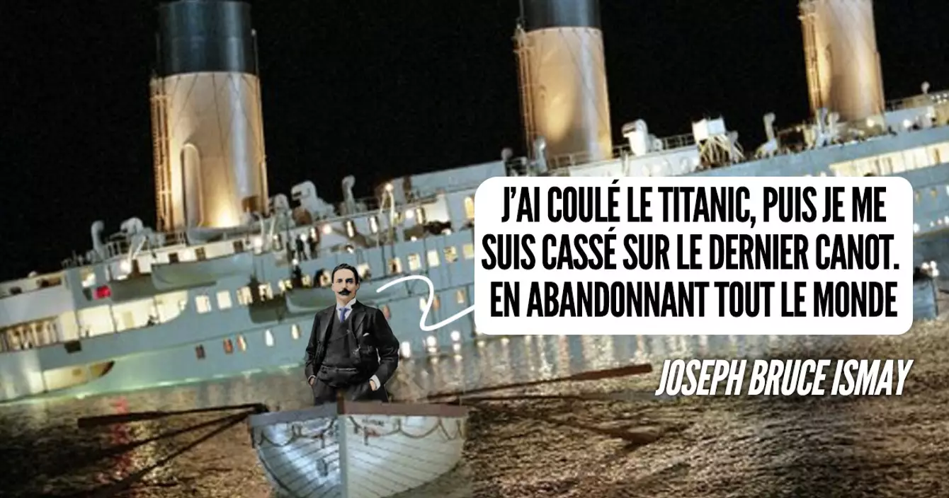 Le PDG de la White Star Line voyageait à bord du fleuron de son entreprise, le Titanic. Pendant le naufrage, en 1912, il aida un peu à gauche, à droite et gêna plus qu'autre chose, puis s'enfuit à bord du dernier canot de sauvetage sans respecter la consigne des femmes et des enfants d'abord. Les journaux l'épinglèrent : « Qui pourrait préférer vivre comme un lâche que mourir comme un héros ? »