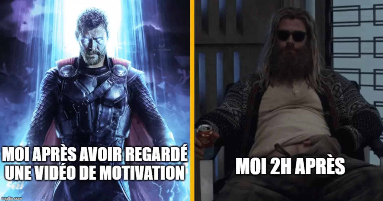 Moi après avoir regardé une vidéo de motivation VS Moi 2 heures après