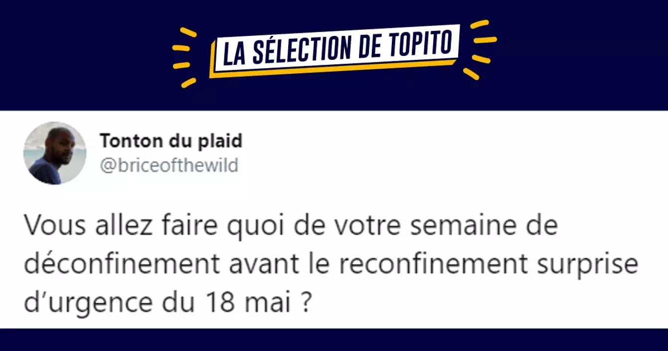 Après les tweets sur le confinement jour 41, on passe aux tweets sur le confinement jour 42. Ces tweets ont vocation à vous faire sourire dans cette période difficile pour tout le monde et vous rappeler qu'il faut rester chez vous pour aider les soignants à faire leur boulot correctement. Merci pour eux.
