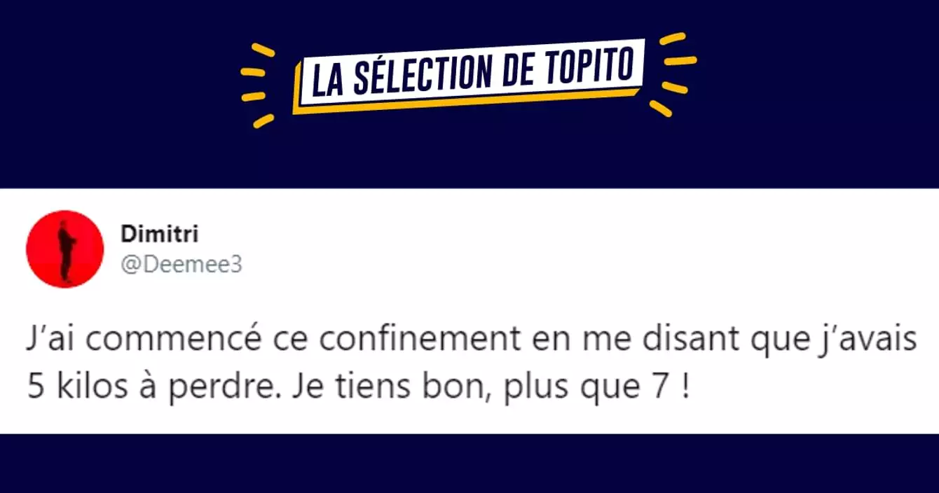 Après les tweets sur le confinement jour 42, on passe aux tweets sur le confinement jour 43. Ces tweets ont pour unique but de te faire penser à autre chose qu'au confinement, même si on parle de confinement dans ce top. Tu as le droit de pleurer, mais uniquement de rire.