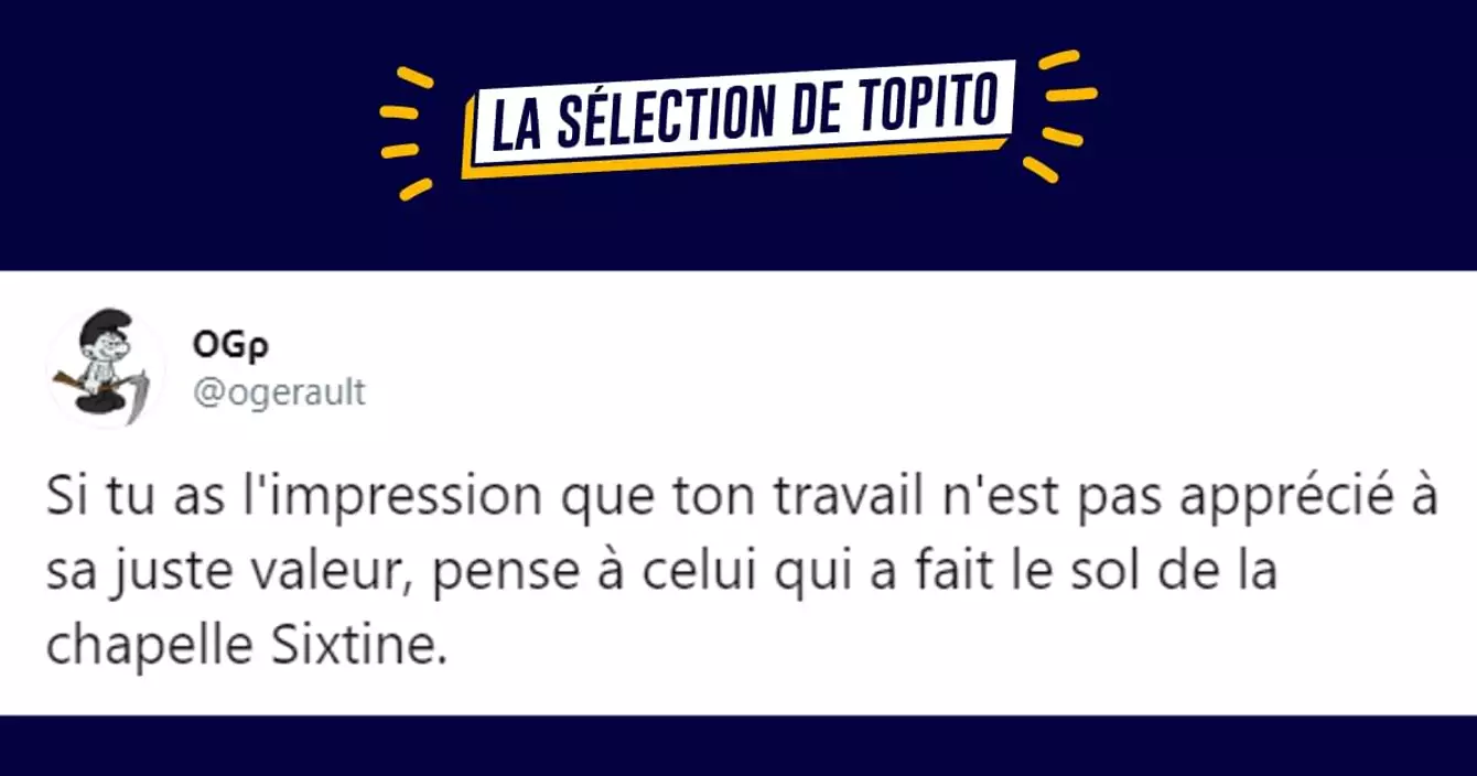 C'est vendredi et c'est l'heure de l'humour. Du coup je t'envoie un top des meilleurs tweets d'un type nommé @ogerault, une personne de qualité qui sait allier des mots pour en phrases marrantes. Abonne toi à ma chaîne Youtube aussi stp.