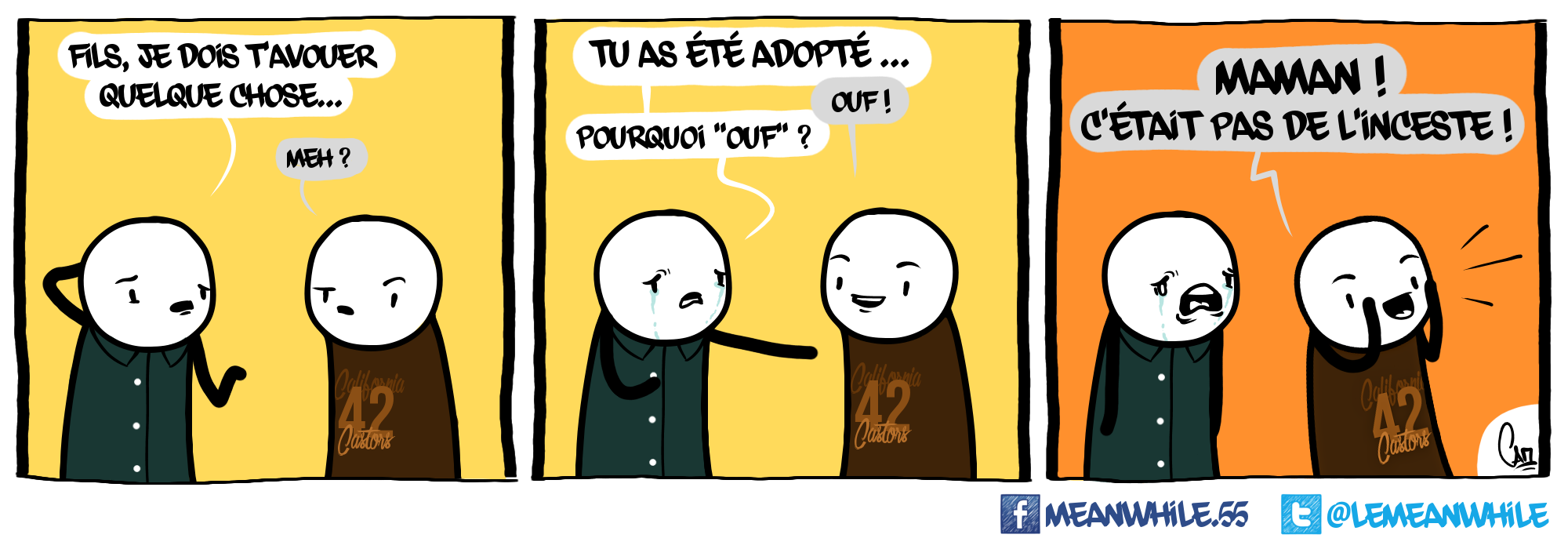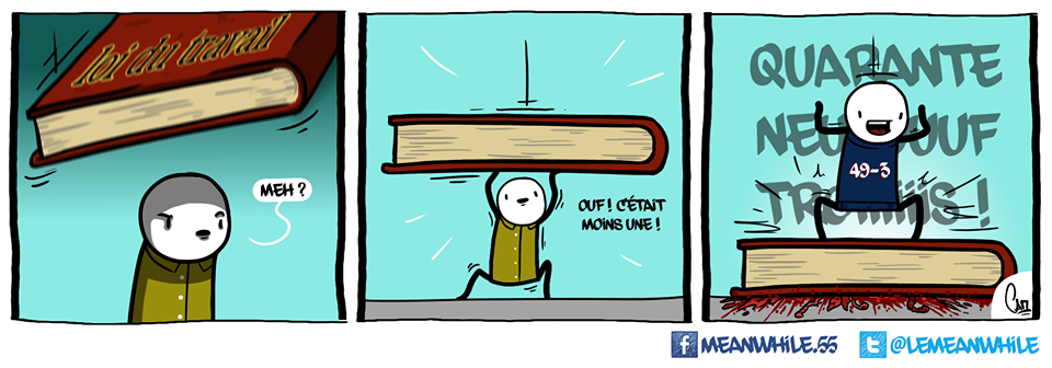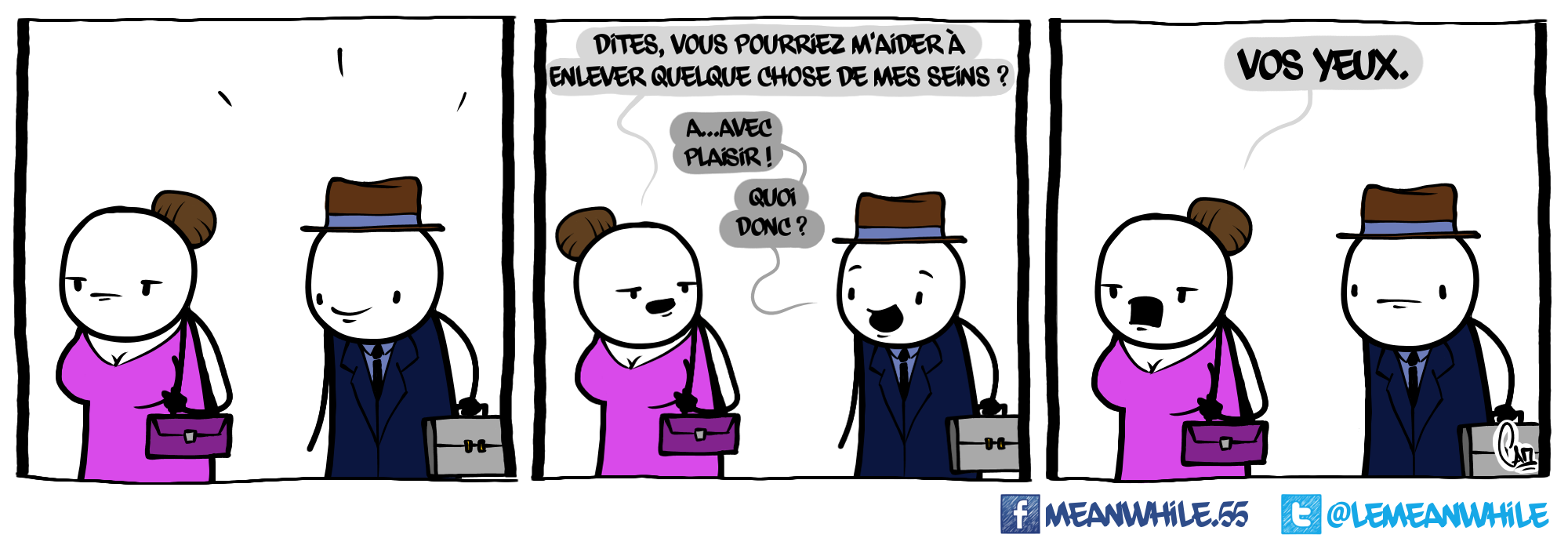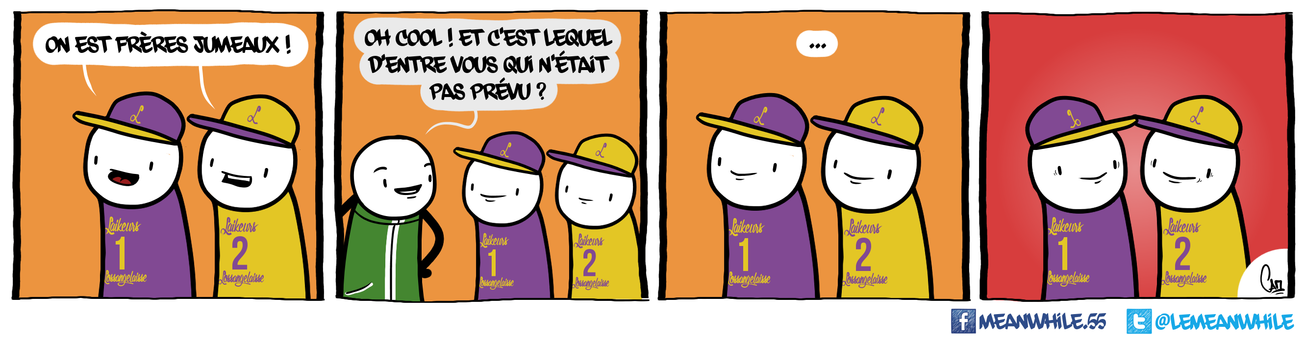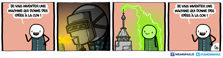Ne sont-ils pas bien huilés ces strips ? Vous pouvez aller en contempler plus sur le Facebook de Meanwhile. Sinon, il y a aussi la foire aux webcomics chez Topito.