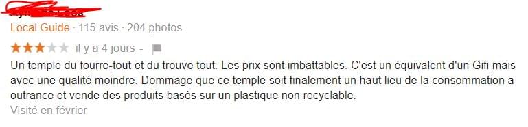 Par souci d'honnêteté, on vous a intégré une critique positive et une négative mais parce qu'on trouvait que cette personne était un peu dure.