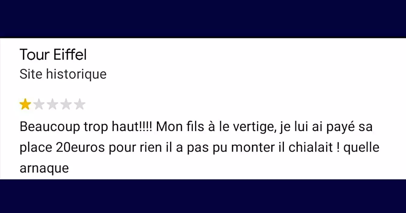 Si vous nous connaissez un peu, vous savez qu'on aime beaucoup les commentaires Google ici. On en a même déjà compilé pas mal : des avis sur les commissariats, des avis sur les fourrières, des avis sur les universités… De quoi remplir un bouquin. Mais plutôt que de sortir un bouquin, on a décidé de classer nos avis préférés toutes catégories confondues ici. Ça devrait illuminer votre journée.