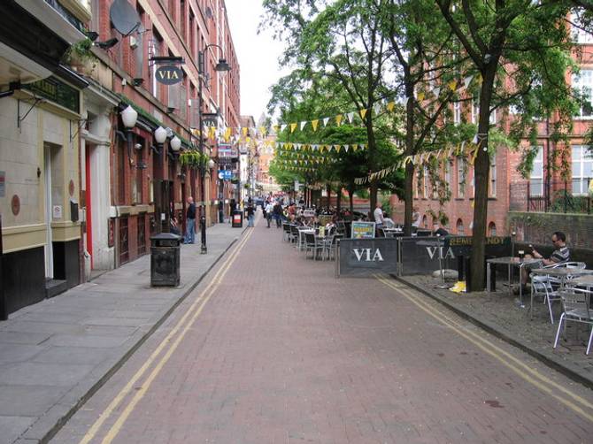 Cette grande rue piétonne de Manchester constitue le coeur de la vie LGBT à Manchester. De nombreuses boutiques et bars dédiés en bordent les trottoirs, dans un climat tolérant et bon enfant (et pas mal débranle à la bière quand même).