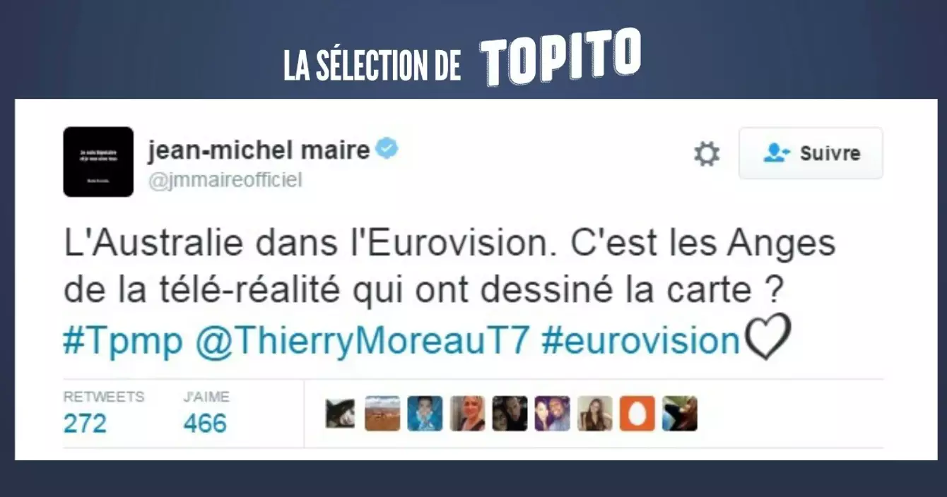 Tous les ans l'Eurovision c'est des costumes pour le moins…atypiques, des chanteurs qui donnent tout et des commentateurs qui ont clairement l'air d'avoir un coup dans le nez. En clair un rendez-vous à ne pas manquer, et ça les twittos l'ont bien compris puisqu'ils ont tous passé leur soirée devant la ce programme édifiant.