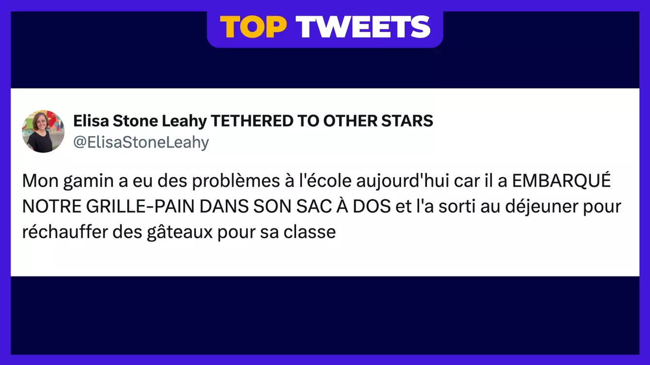"Apparemment, mon enfant a eu des problèmes à l'école aujourd'hui parce qu'il a EMBARQUÉ NOTRE GRILLE-PAIN DANS SON SAC À DOS et sorti au déjeuner pour faire chauffer des gâteaux Pop Tarts pour sa classe. Je ne peux pas m'arrêter de rire."