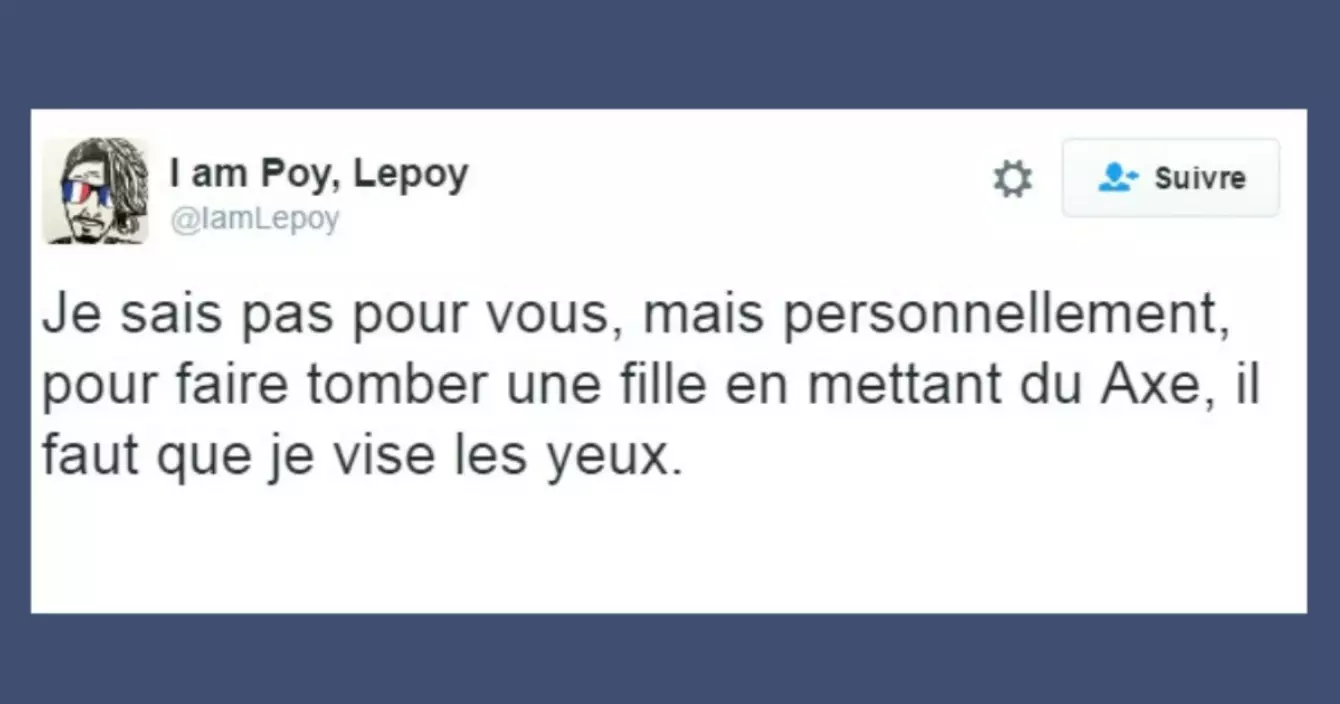 Je sais pas pour vous, mais personnellement, pour faire tomber une fille en mettant du Axe, il faut que je vise les yeux.