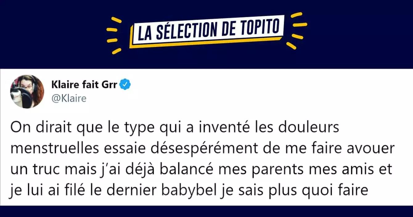 @Klaire est une Twittos depuis fort longtemps, mais aussi YouTubeuse, et même topiteuse puisqu'elle a écrit un top chez nous (c'est sur les poils qui ont changé le cours de l'Histoire, et c'est cool). On avait déjà compilé les meilleurs tweets de Klaire il y a trois ans, mais le temps file à une vitesse, le moment est donc arrivé de vous servir une deuxième fournée, toujours aussi bonne.