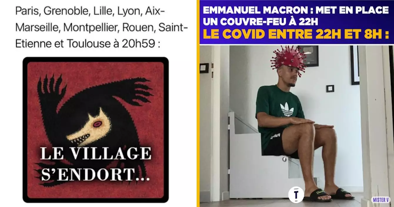 Allez, pour changer, on va voir des memes qui parlent d'actu. Et l'actu, en ce moment, c'est le couvre-feu. C'est les soirées où on va être punis à la maison de 21h à 6h. C'est les réunions à 6 maximum et c'est beaucoup moins d'amusement. Mais bon, c'est comme ça, on va faire avec, et puis en attendant que ça aille mieux, on va mater des memes drôles. Si ceux-là vous ont fait légèrement sourire, abonnez-vous aux comptes Insta.