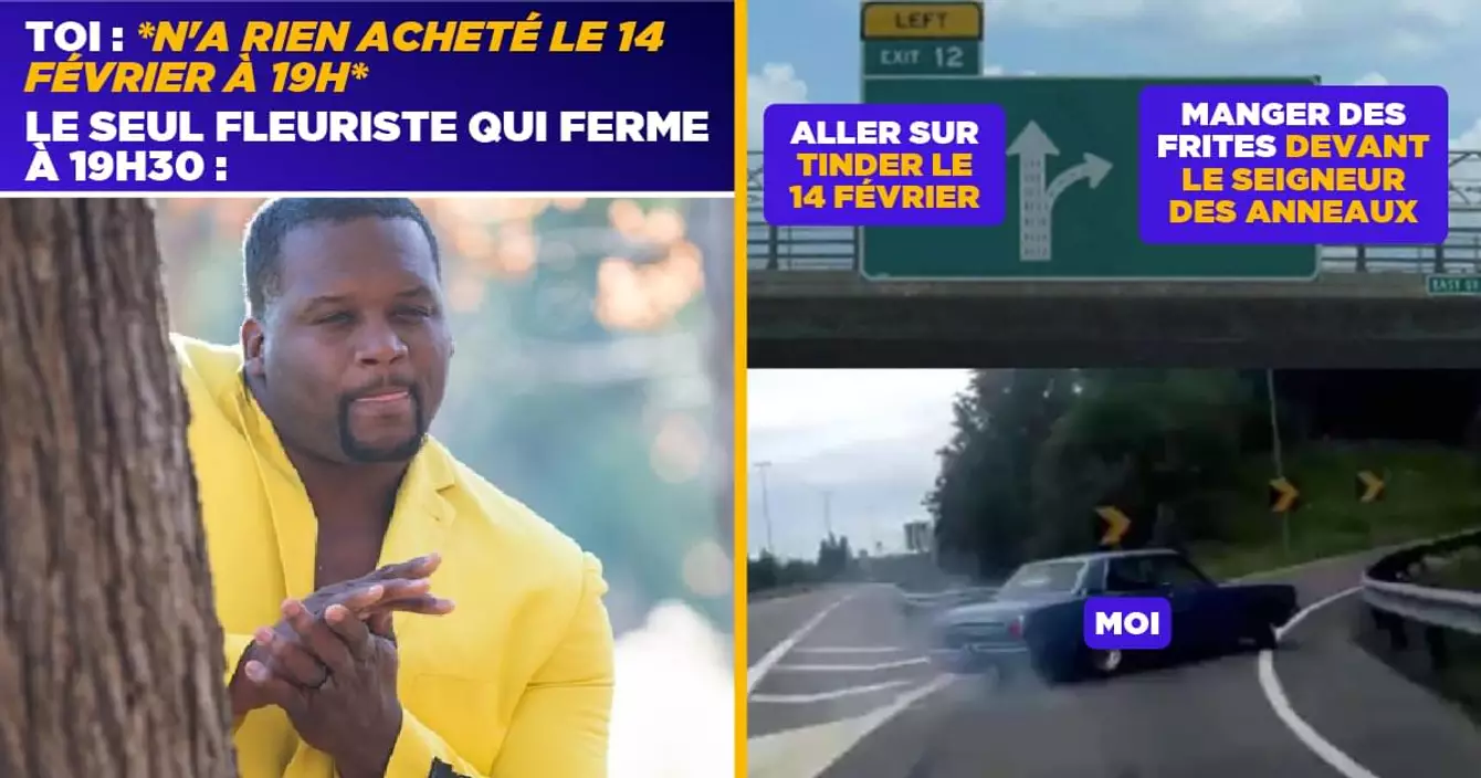 C'est la Saint-Valentiiiiin. Donc oui c'est pas ouf pour les célibataires (d'ailleurs voici des cadeaux pour célibataires), mais ça peut être l'occasion de vivre une expérience unique pour les couples, genre faire un restaurant romantique à Paris. Mais attendant que cette joyeuse fête du love passe, voici les meilleurs meme sur la Saint-Valentin.