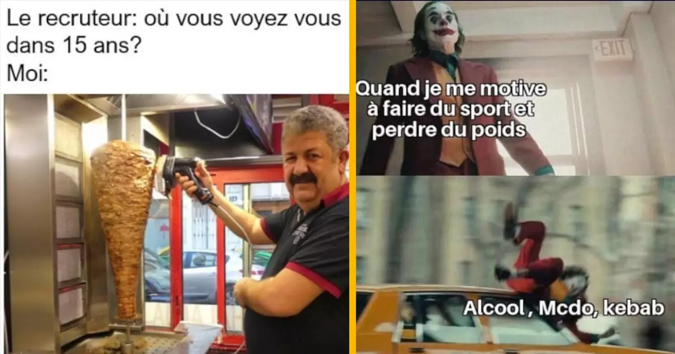 Il est temps de célébrer le plat le plus démocratique du monde : le grec. Le kebab, c'est le seul truc qui peut te caler pour 6,50 euros seulement. C'est le compagnon parfait des gros morfales qui ont toujours la dalle. Qu'il soit en pita ou en galettes, c'est notre meilleur ami. Voici donc le kebab en 20 memes de qualités. Et comme toujours, si vous avez apprécié les images, abonnez-vous aux comptes Insta. Bisous bisous.