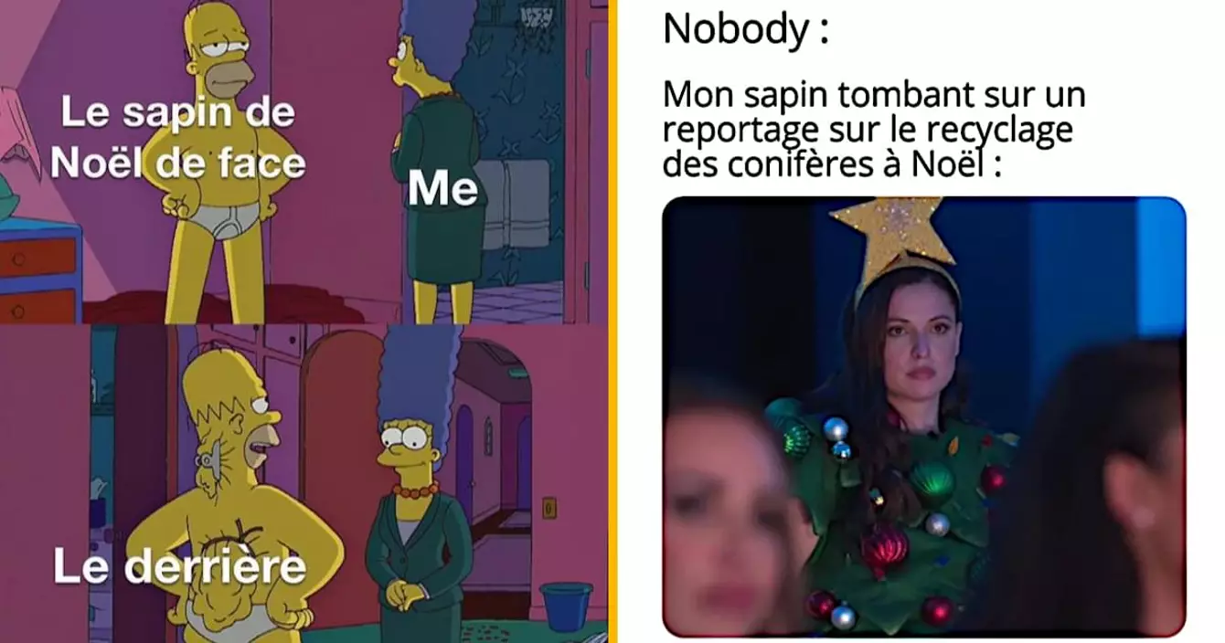 Qui dit Noël dit orgie culinaire au repas de Noël mais dit aussi sapin. Un Noël sans sapin, c'est comme une quiche lorraine sans lardons, comme un burger sans les frites, comme Queen sans Freddie Mercury : c'est naze. Le sapin, avec ses guirlandes et ses boules, c'est ce qui fait la magie de Noël. En plus, sans lui, on les met où les cadeaux ? Bref, il est essentiel, alors il mérite son petit top de memes. Comme d'hab, si vous aimez les images, abonnez-vous aux comptes sur Insta.