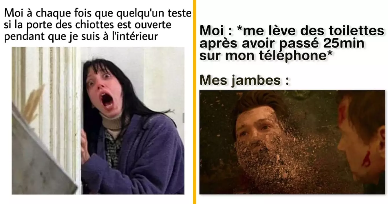 Il paraît qu'on passe environ 3 ans de notre vie aux toilettes, ce qui assez énorme, vous en conviendrez. Certains penseront que c'est du temps de perdu, moi je dirais plutôt qu'il faut apprécier les moments passés aux chiottes à leur juste valeur. Le trône c'est le meilleur endroit pour lire un livre, parler à ses potes sur messenger et mater les photos Insta de ses exs. C'est aussi l'endroit où les créateurs de memes trouvent le plus d'inspiration. Donc, forcément, ils font quelques memes sur les toilettes, et c'est souvent les plus drôles.
