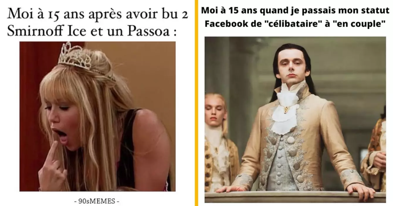 Les 15 ans, c'est l'âge ingrat où on n'a pas fini de muer, où on a des gros chtars plein la tronche et où on a un crush qui ne sait même pas qu'on existe. Mais les 15 ans, c'est aussi un âge très cool où on n'a encore aucune responsabilité, où on teste des trucs à la con comme boire de l'alcool, et où on a les hormones en folie (le sexe oui). Perso, je donnerais beaucoup pour revivre cette époque de dingo, mais comme c'est pas possible, je suis allé vous chercher des memes sur les 15 ans. Bon retour dans le passé.