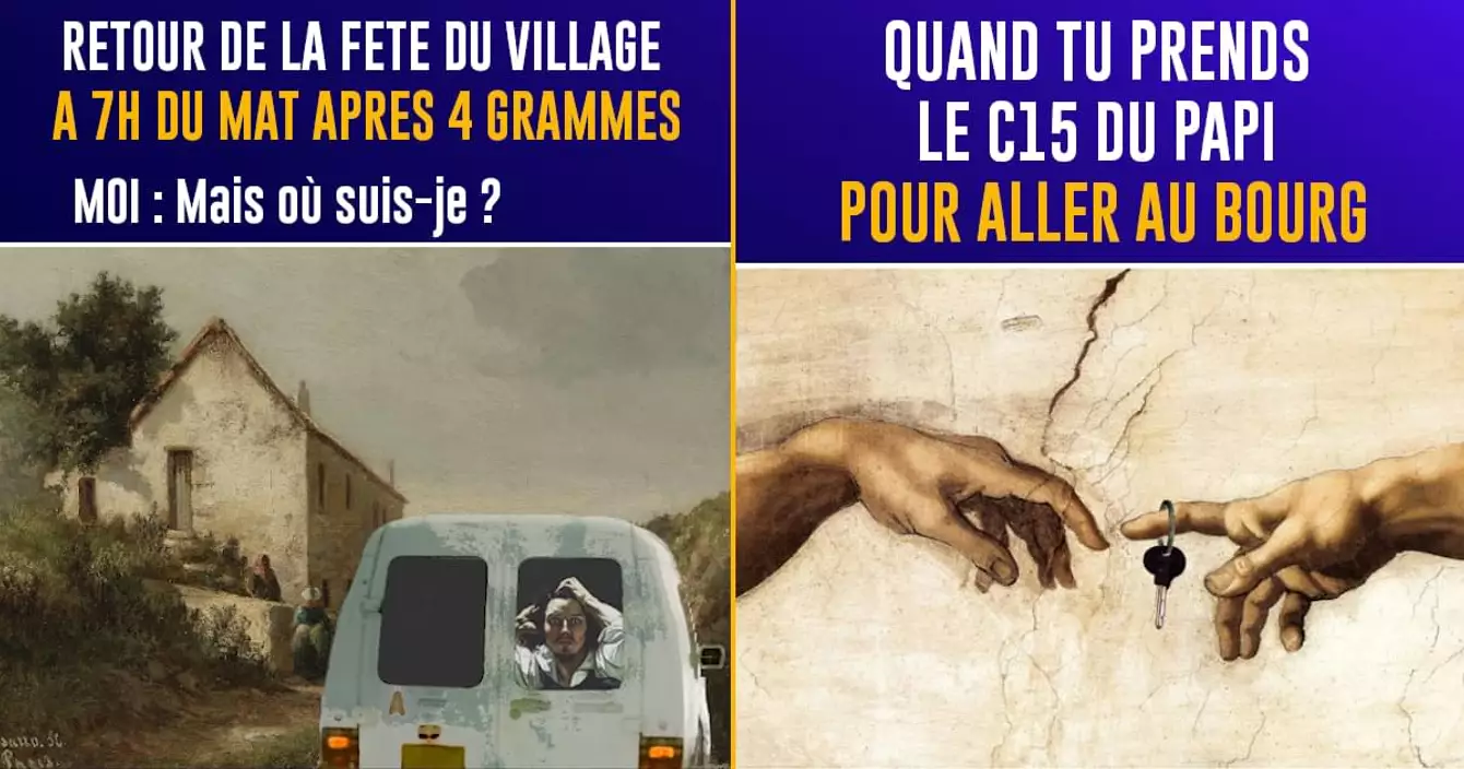 Le week-end dernier, Meme Décentralisés a partagé l'excellent compte Insta de @Arthaschanged, qui anime des tableaux célèbres, et nous a aussi offert une flopée de memes artistiques autour de la C15. Pour ceux qui ne sont pas familiers de Memes Décentralisés (qui fait des memes sur la province et la France rurale), la Citroën C15 est un running gag parce que c'est le véhicule utilitaire typique de la campagne ; celui du boulanger, celui du pote de ton oncle, ou même, si tu as de la chance, celui de ton papa. Bref, voilà des jolies images de C15 intégrées dans des œuvres d'art.