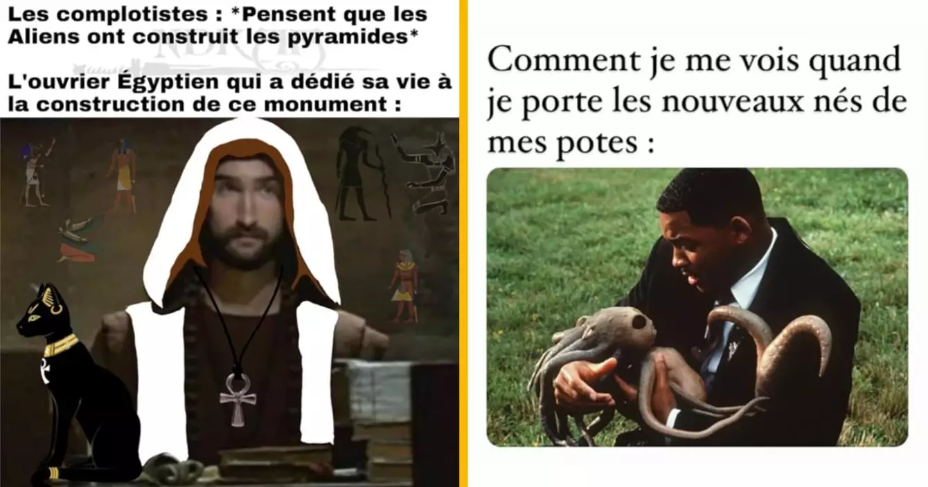 Si l'on en croit les rumeurs sur l'existence de bases aliens dans le monde, les extra-terrestres sont déjà parmi nous. Ben franchement, on leur souhaite bonne chance, parce que même nous on n'a pas toujours envie d'être là. En tout cas, faisons-leur bon accueil et offrons-leur un top de memes. C'est la moindre des politesses quoi. Tiens, on va aussi leur faire une tarte aux pommes, tout le monde aime la tarte aux pommes.