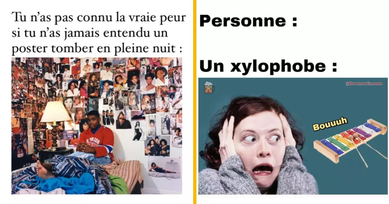 Bon, il me reste un peu de taf pour mon spectacle, je vais continuer à bosser ça, et en attendant voici quelques memes sur la peur. Y'aura des peurs d'enfants, des peurs d'adultes, et des peurs un peu nulles. Globalement, des trucs qui font palpiter le cœur, suer les aisselles et dresser les poils. Bouh !!! (vous voyez, ça ne marche toujours pas, c'est naze).