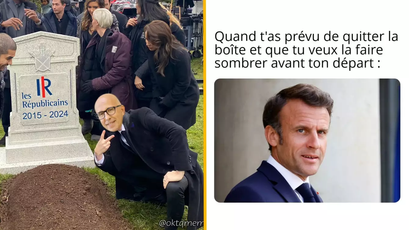Bon les amis, je vais pas vous mentir, le contexte politique en France fait ps rêver. Je dirai même carrément qu'il fut en dépression et qu'il donne envie de se taillader quelques veines avec un couteau à beurre, sans exagération aucune. Mais il y a bien une chose que les fachos n'auront pas dans ce foutu pays : c'est l'amour de la blague et les memes de la semaine. Parce que oui, vous avez droit de rire à travers vos larmes, c'est autorisé (enfin jusqu'à ce que le RN interdise toute forme de bonheur une fois à la tête du gouvernement ahah… Ahaha…).