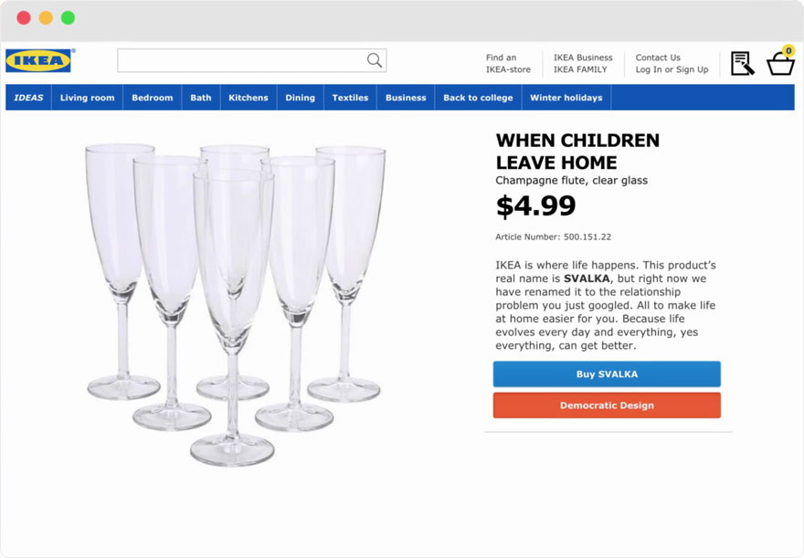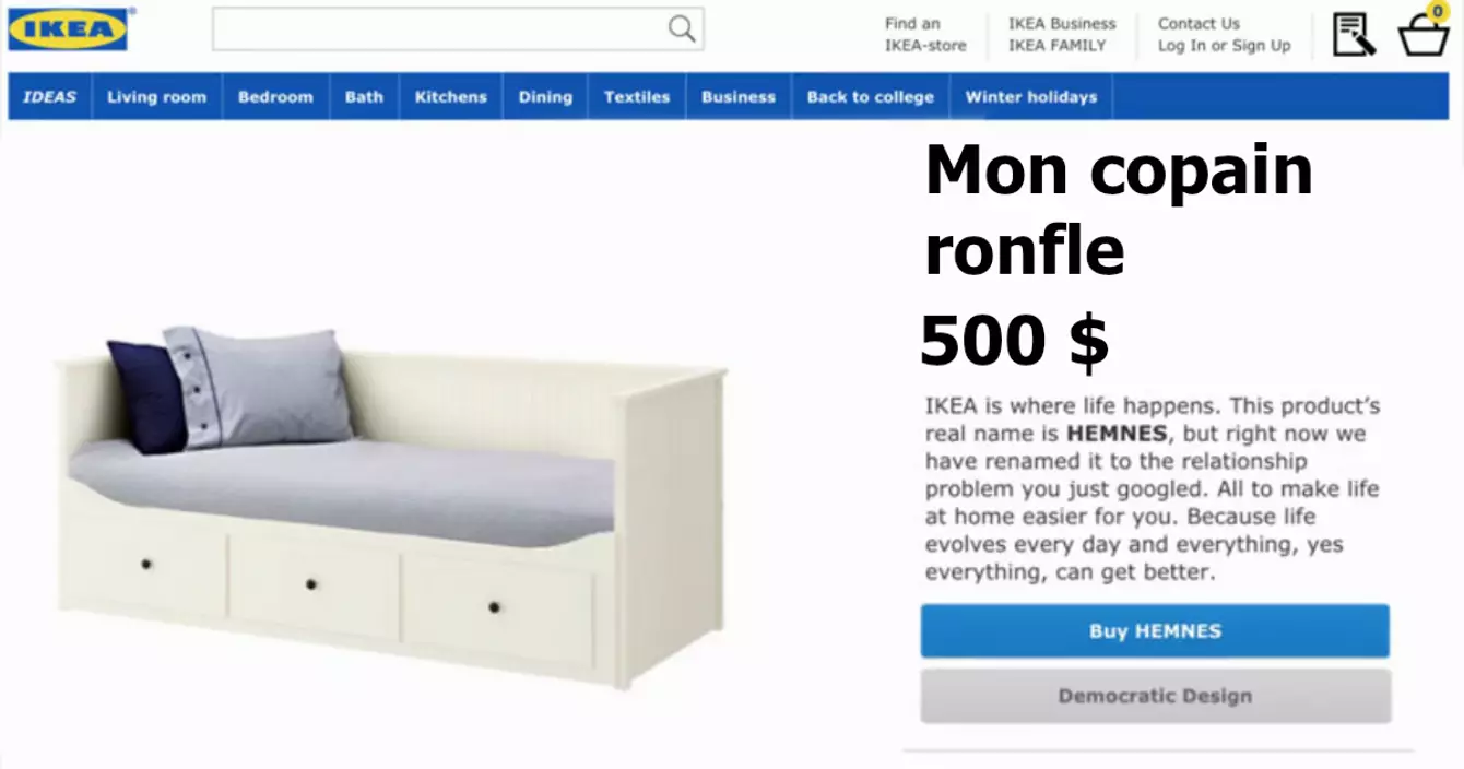 Spécialiste de com' qui fait plaisir, IKEA a récemment lancé une campagne en Suède dans laquelle la marque s'amusait à remplacer les noms des meubles les plus vendus par les recherches les plus fréquemment faites sur Google autour du thème du couple. Le résultat est plutôt très très cool.